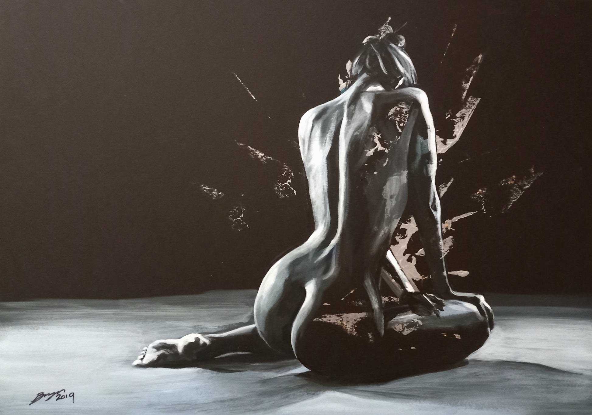 Medium: Acrylic paint and metallic paint on quality mount board.