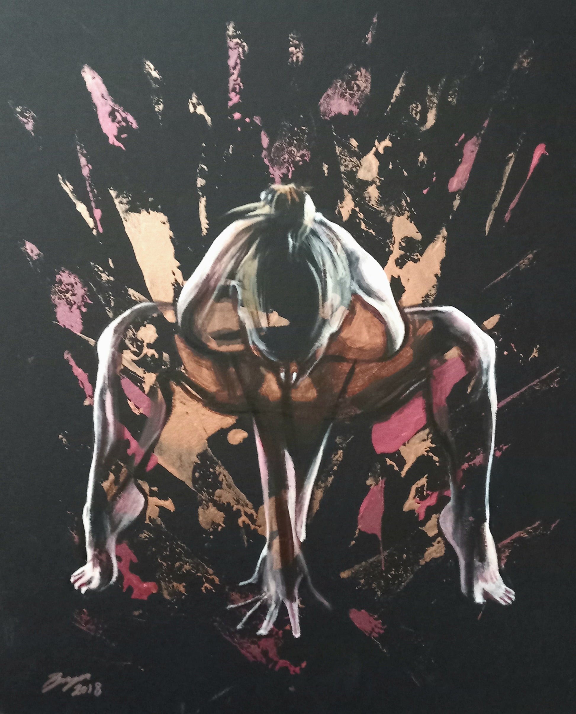 Medium: Acrylic paint and metallic paint on quality mount board.