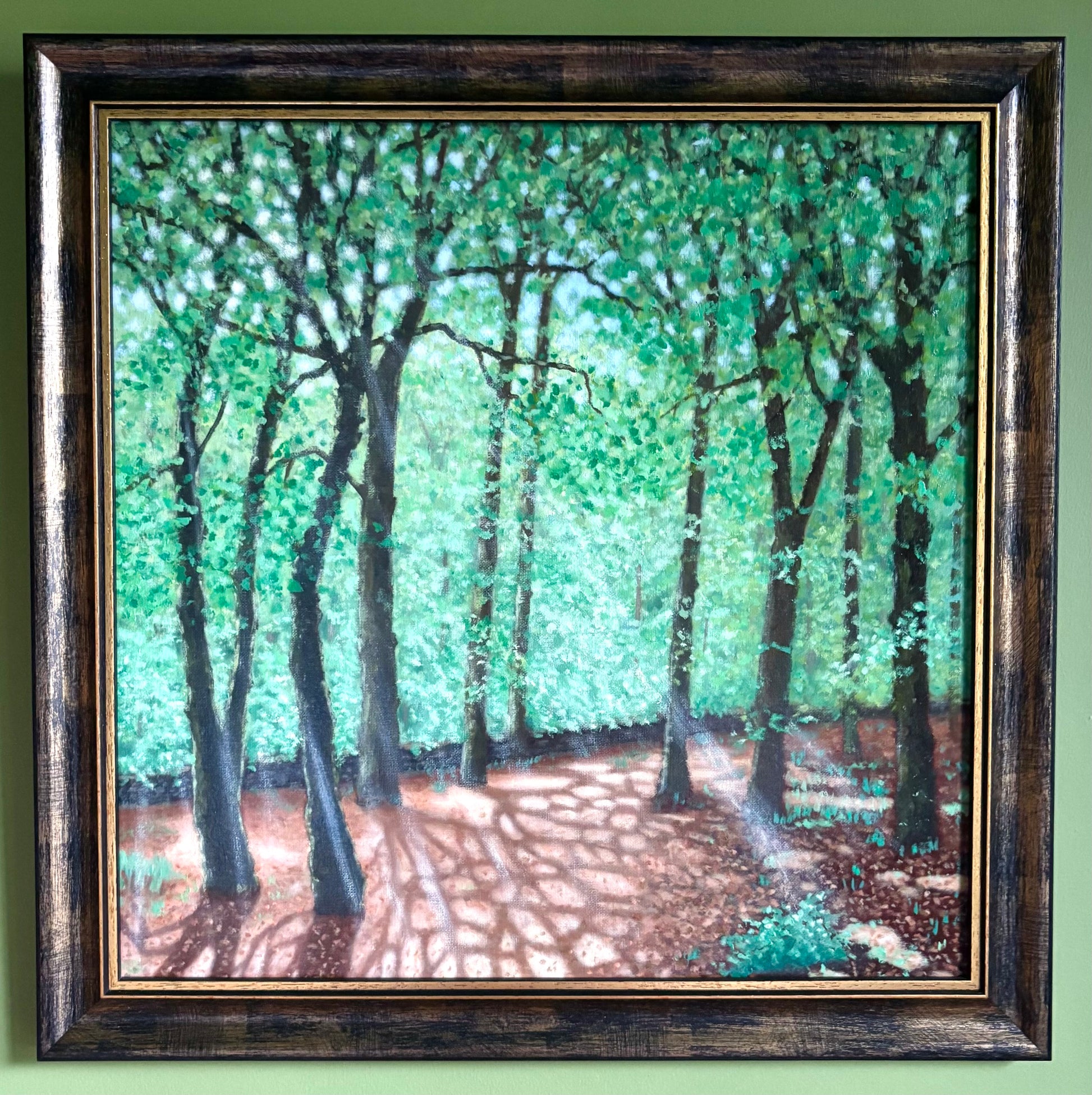 Title Roddlesworth woods with sunbeams
