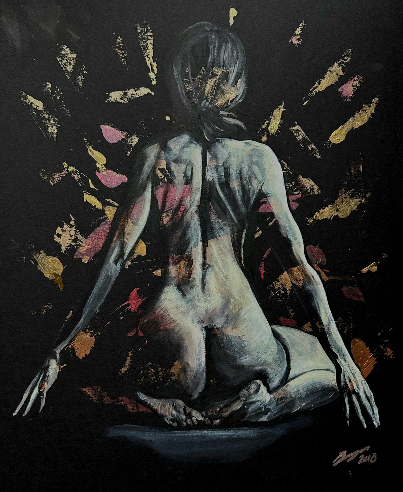 Medium: Acrylic paint and metallic paint on quality mount board