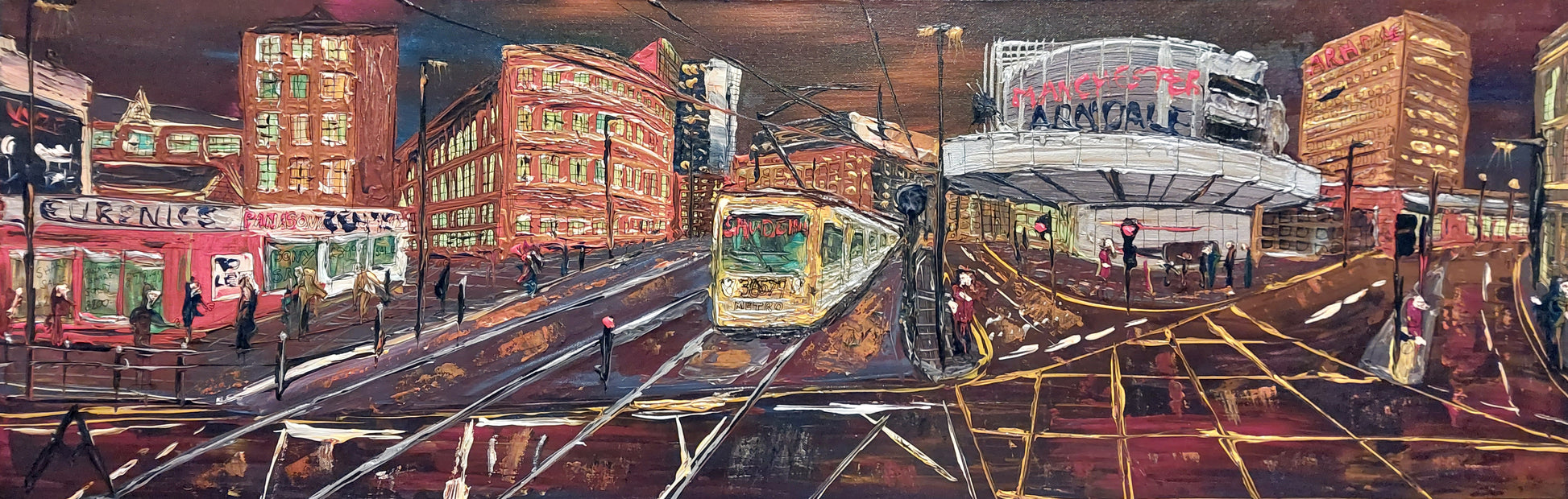 I painted this scene of shudehill with views looking onto the rear of the Manchester Arndale centre near the shudehill exchange. I like this view and I used to ride my motorbike past here everyday to go to work and I love the old and new buildings and the area is steeped in history.